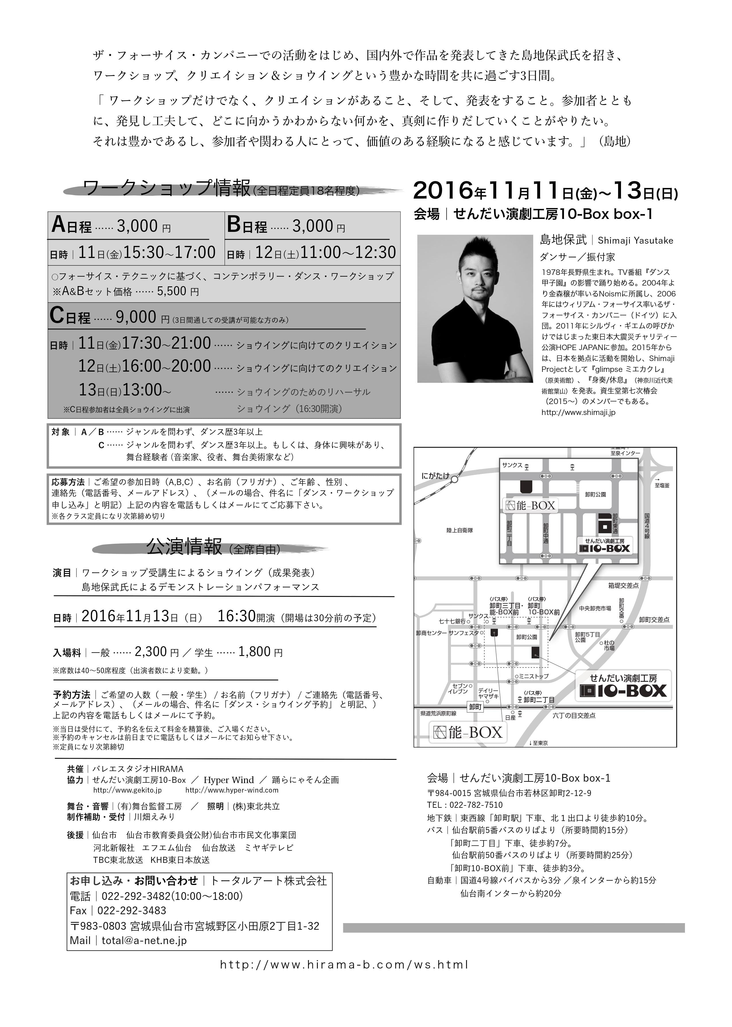 島地保武コンテンポラリー・ダンス ワークショップ・クリエイション&ショウイング仙台