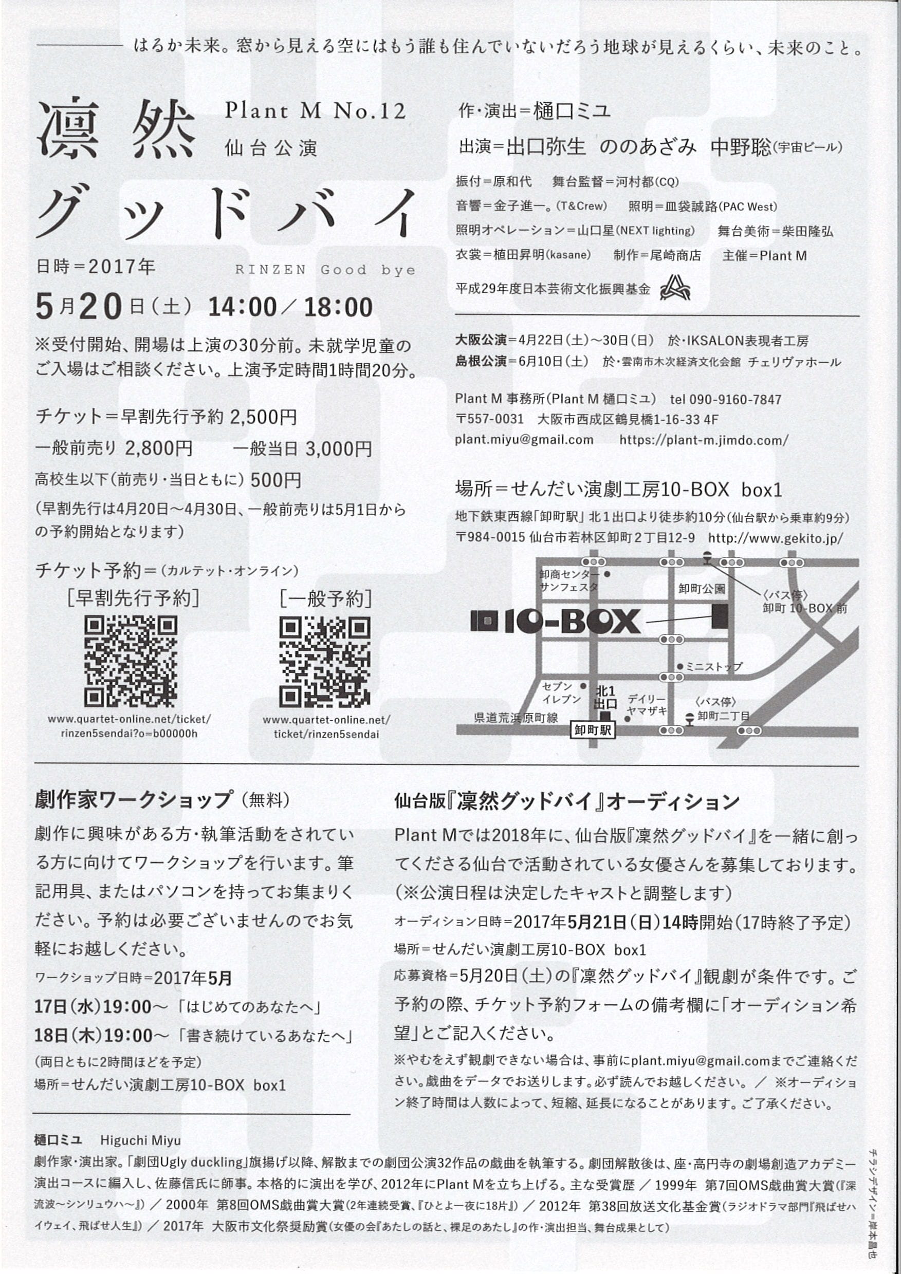 Plant Mでは2018年に、仙台版『凛然グッドバイ』を一緒に創ってくださる仙台で活動されている女優さんを募集しています。
