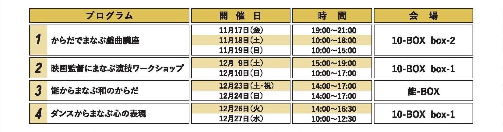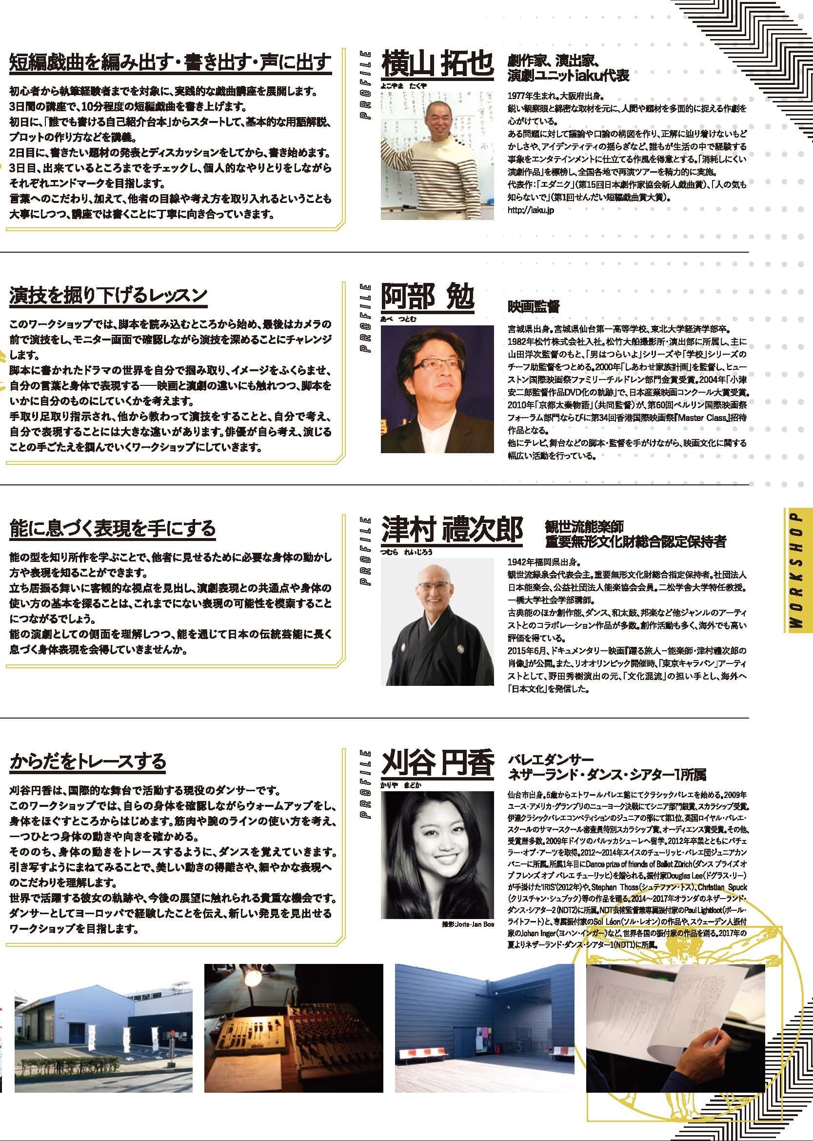 内 容:初心者から執筆経験者までを対象に、実践的な戯曲講座を開催、3日間の講座で10分程度の短編戯曲を書きあげます。