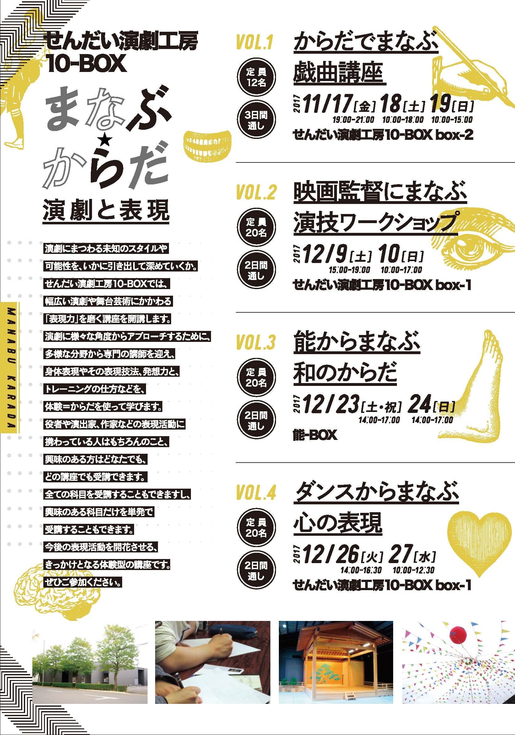 せんだい演劇工房10-BOXでは、幅広い演劇や舞台芸術にかかわる「表現力」を磨く講座を開講します。