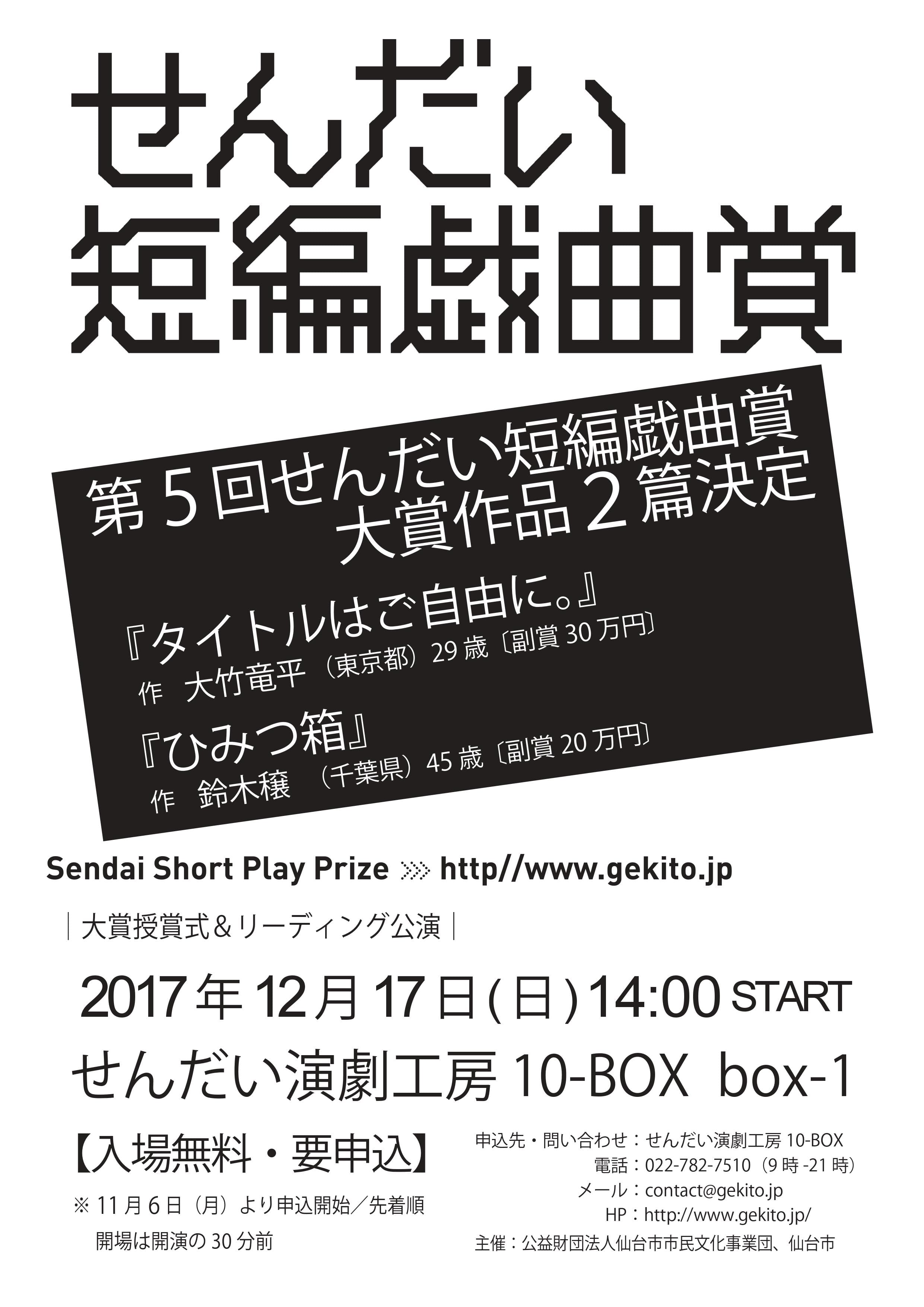 第5回せんだい短編戯曲賞 大賞授賞式+リーディング公演