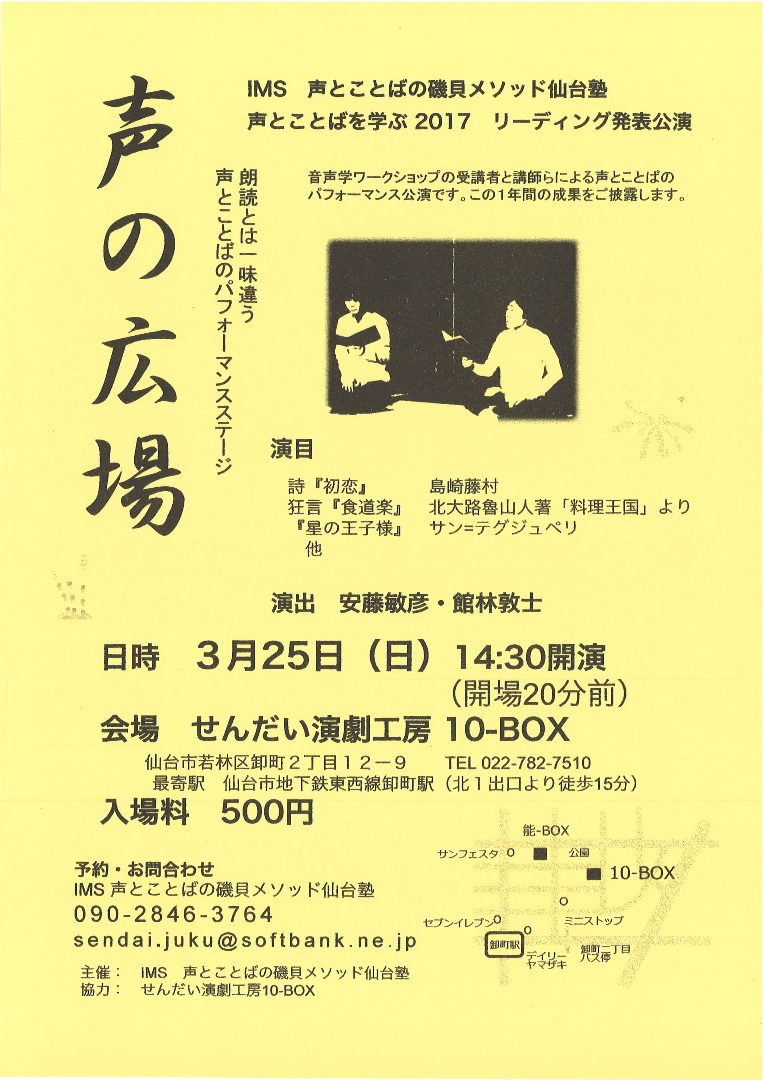 IMS 声とことばの磯貝メソッド仙台塾 リーディング発表公演 『声の広場』