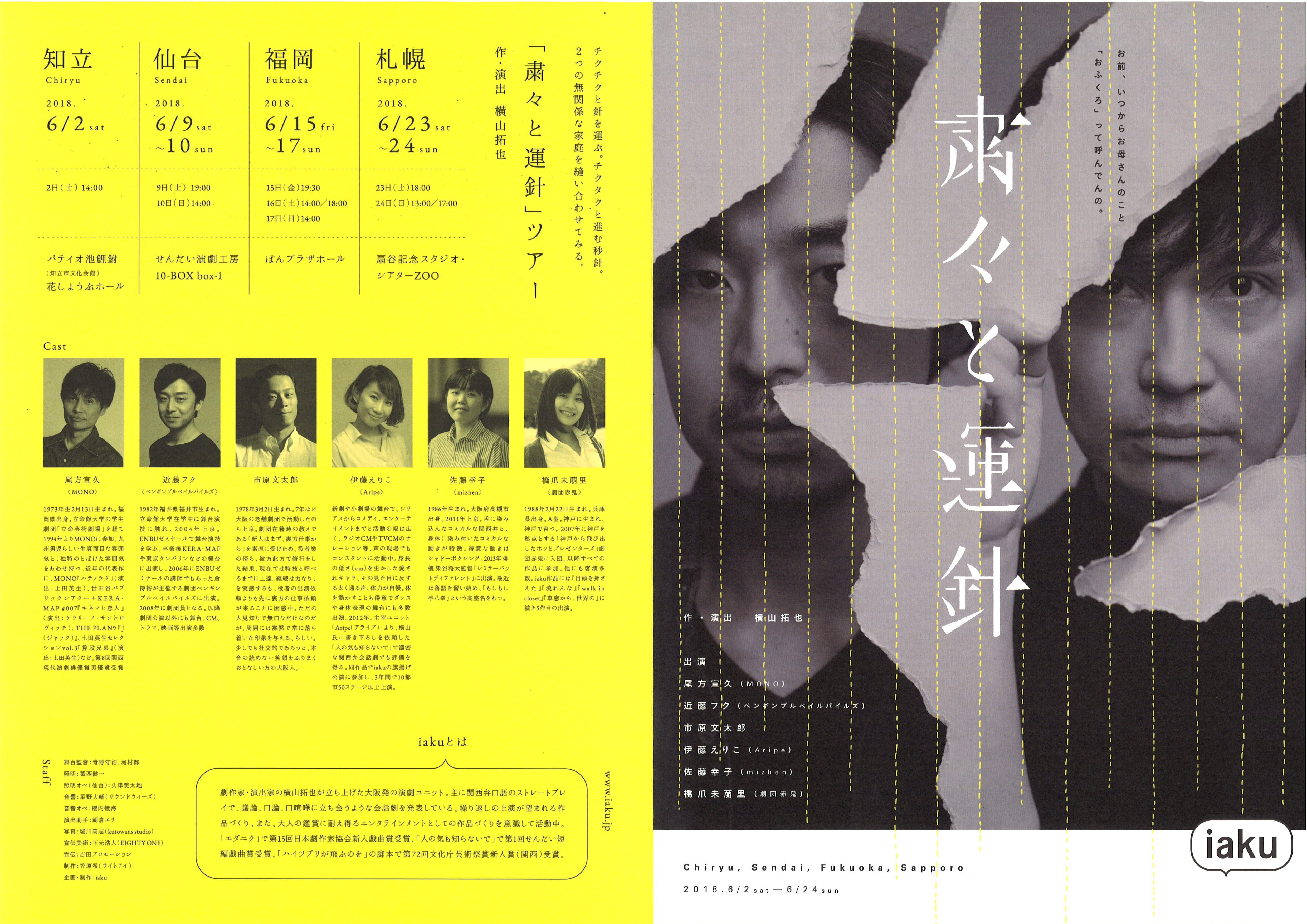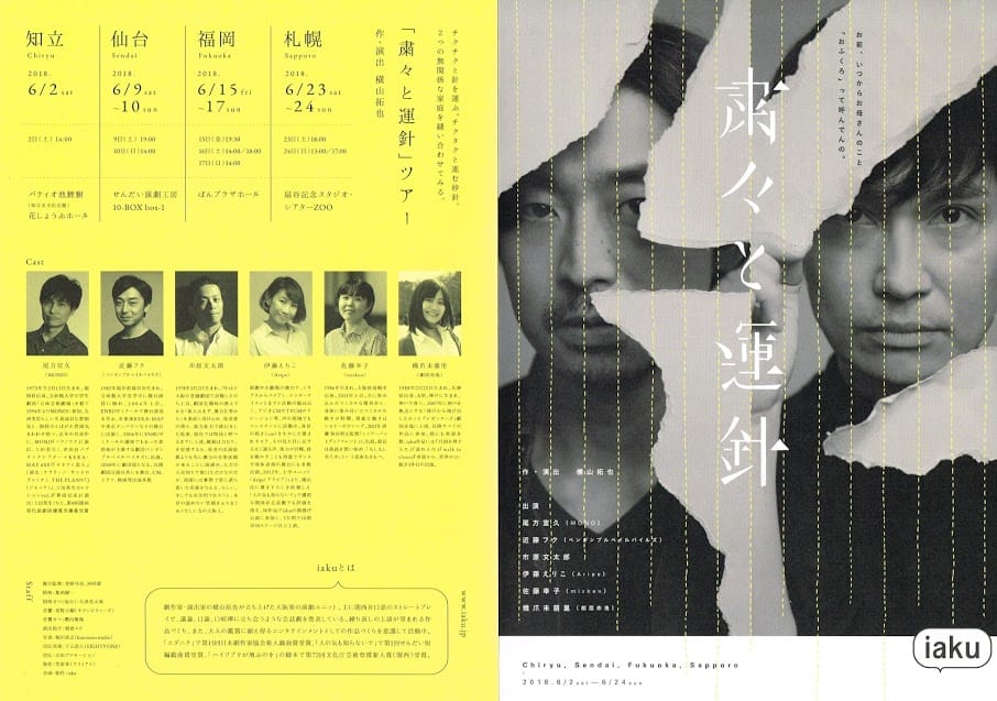 第1回せんだい短編戯曲賞の大賞受賞者で、平成29年度文化庁芸術祭賞新人賞を受賞した横山拓也による演劇ユニットiaku。