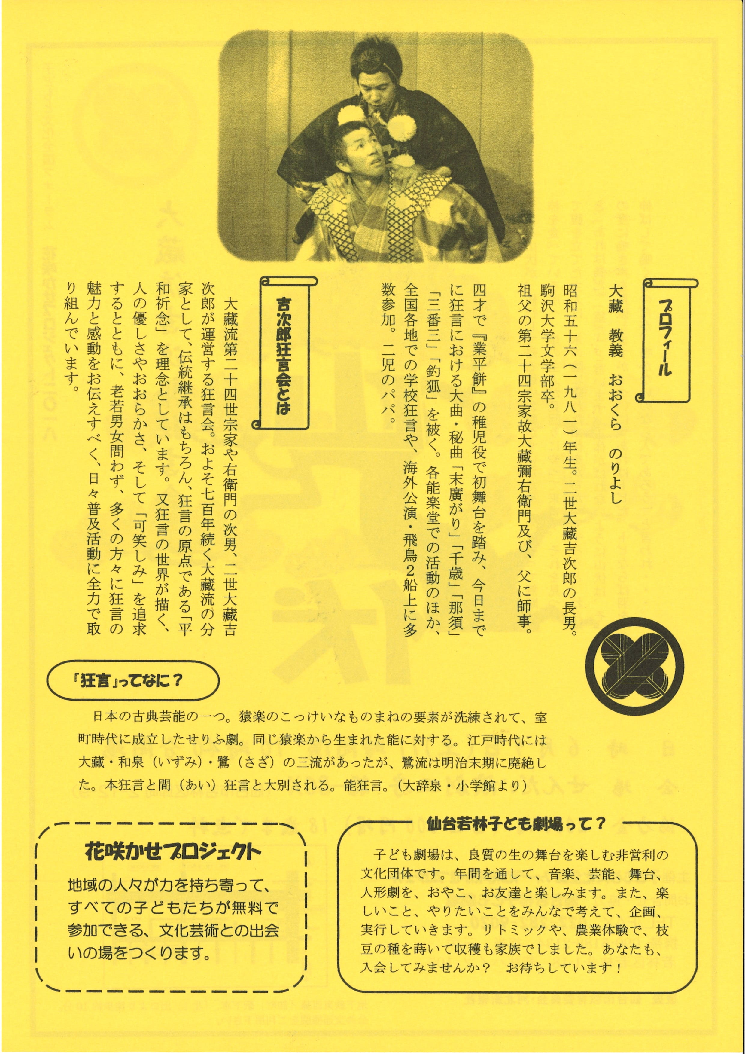 子どもと文化全国フォーラム花咲かせプロジェクト 大蔵流吉次郎狂言会『柿山伏』