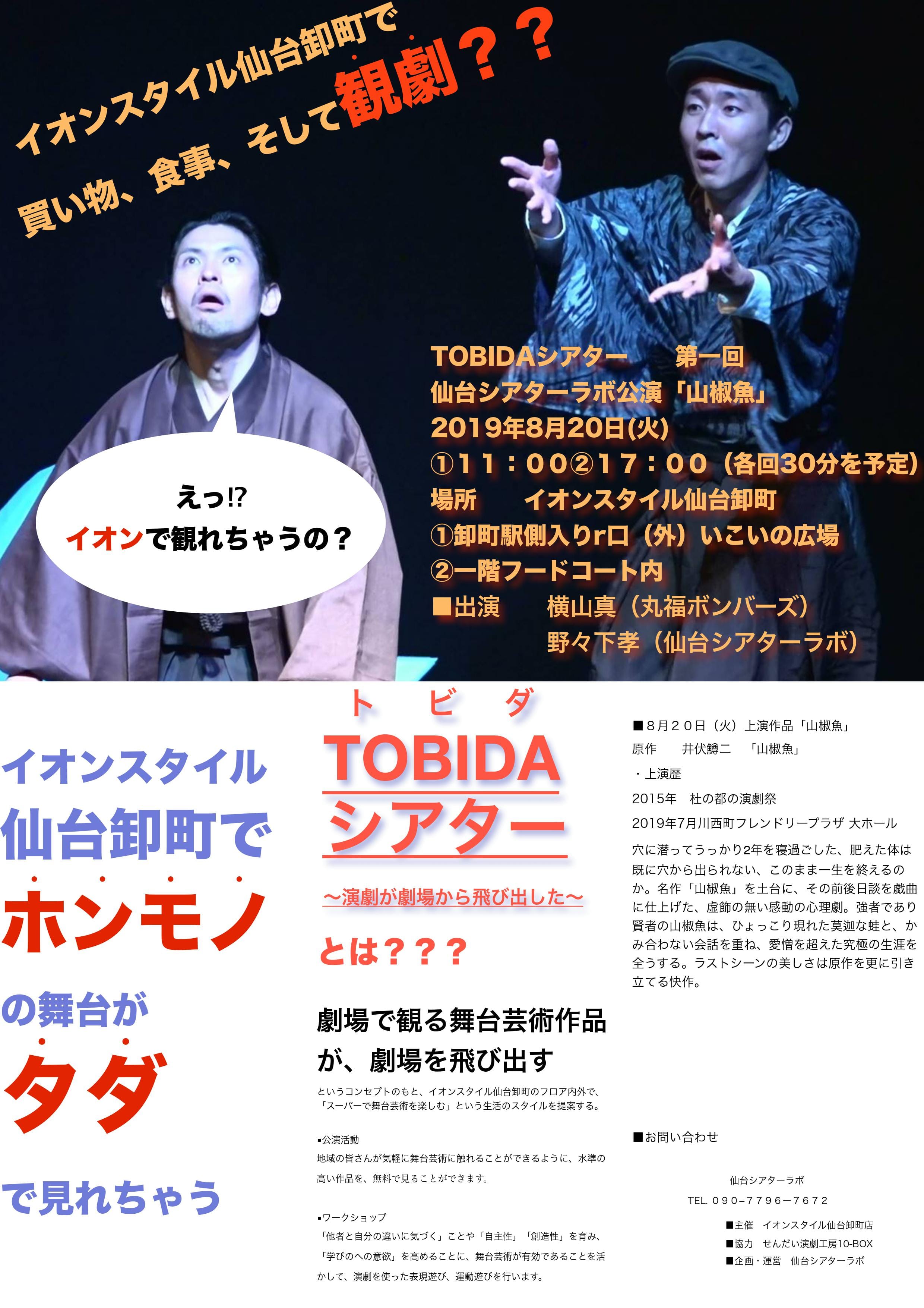 第一弾は仙台シアターラボ公演「山椒魚」。ご来場お待ちしています!