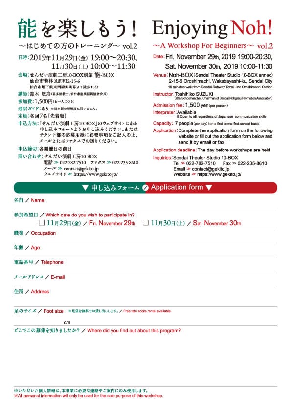 会場:能-BOX(せんだい演劇工房10-BOX別館)(仙台市若林区卸町2-15-6)
