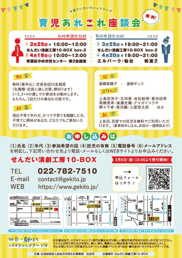 <中止>仙台・劇のまちトライアルシアター2020 「子育ていろいろシェアリング」座談会