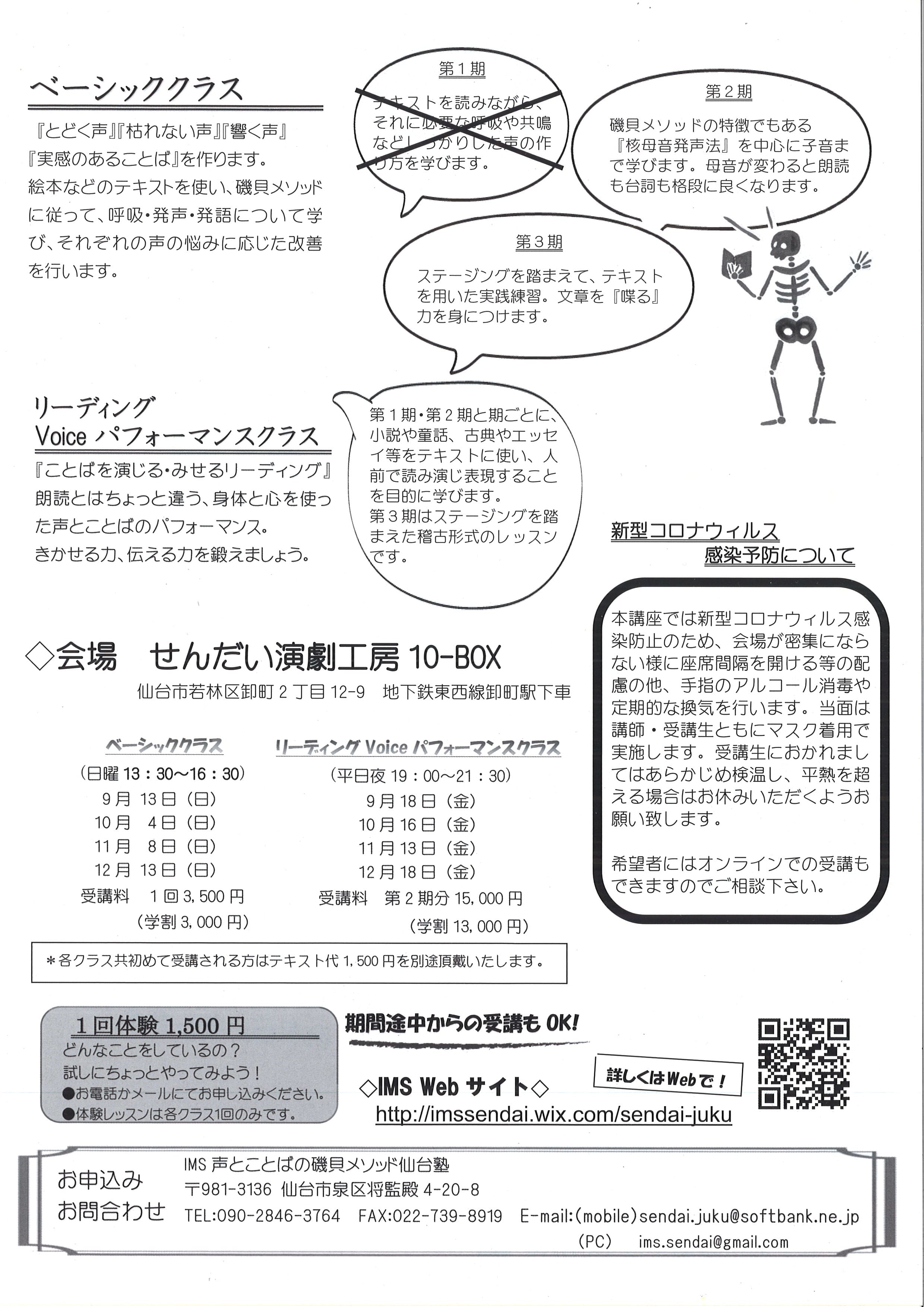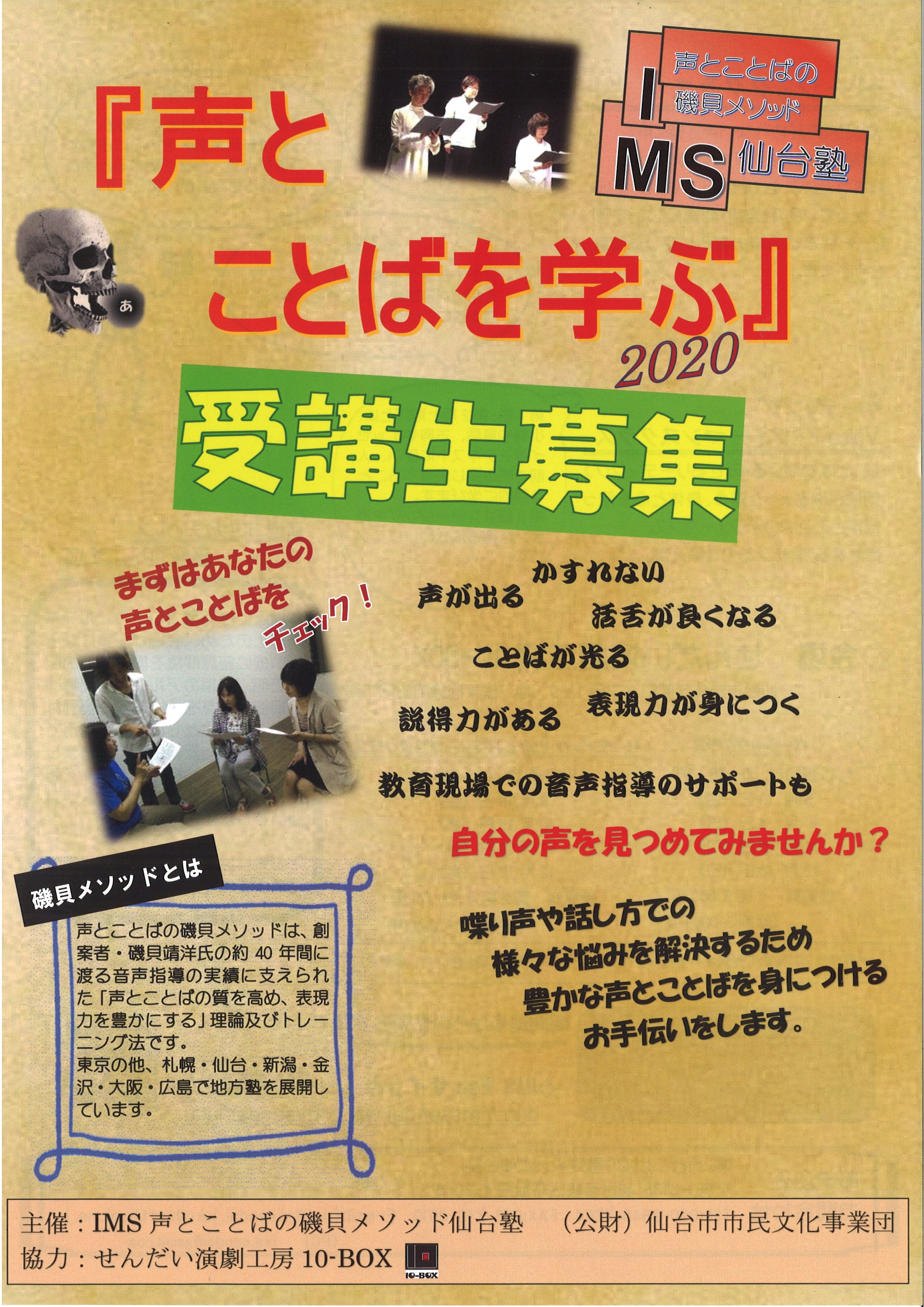 IMS声とことばの磯貝メソッド仙台塾 『声とことばを学ぶ』2020 受講生募集