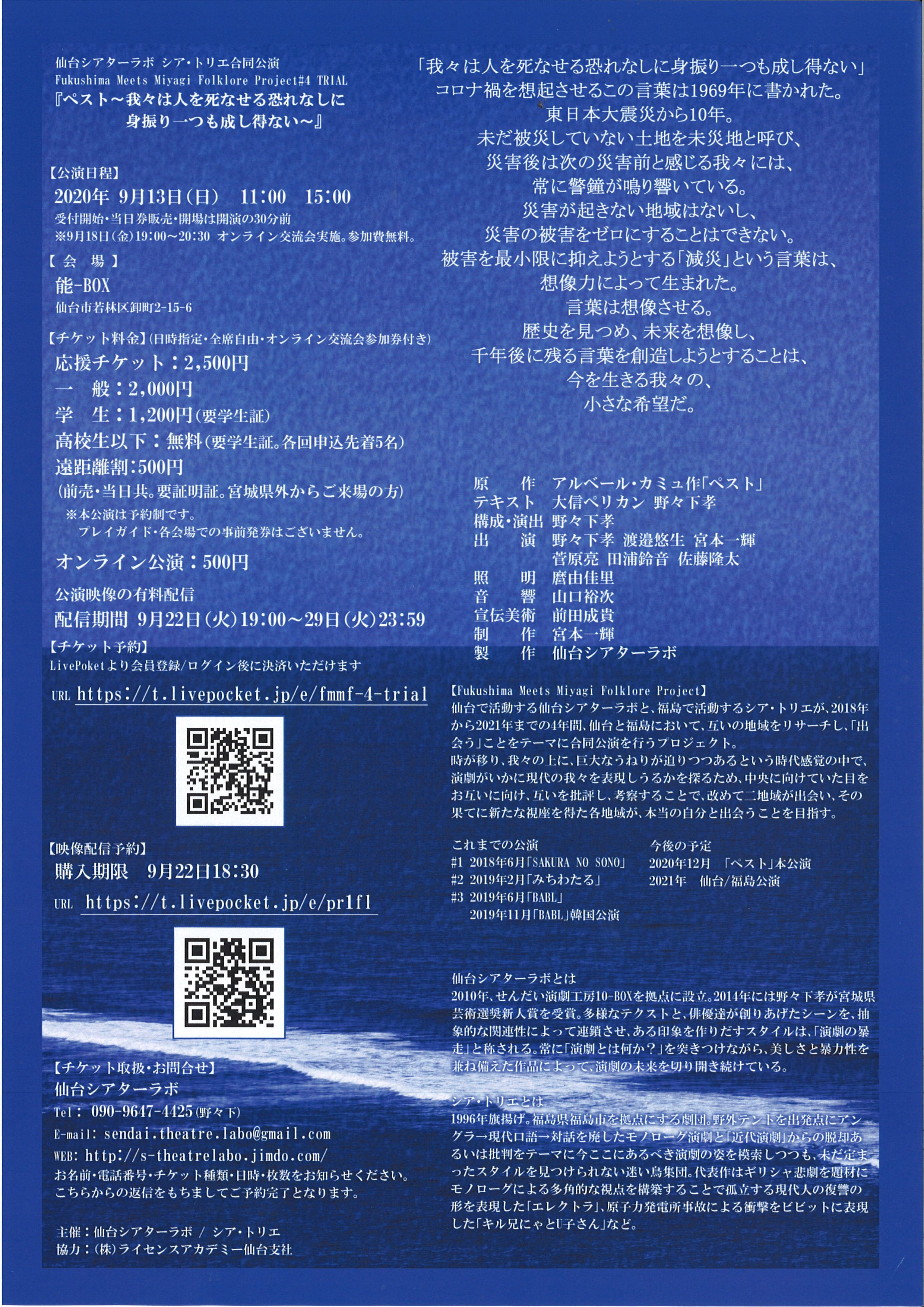 仙台シアターラボ シア・トリエ合同公演 『ペスト~我々は人を死なせる恐れなしに身振り一つも成し得ない~』