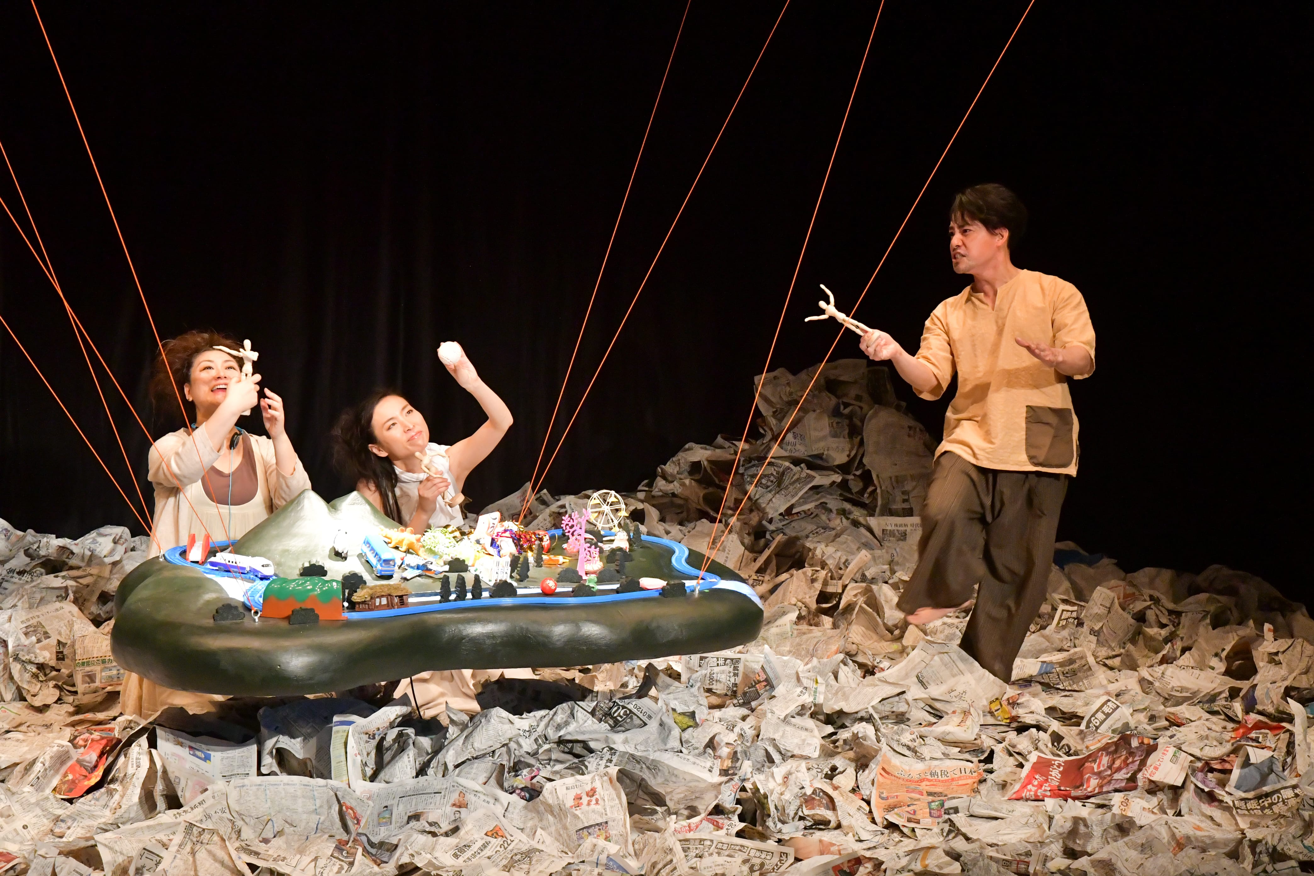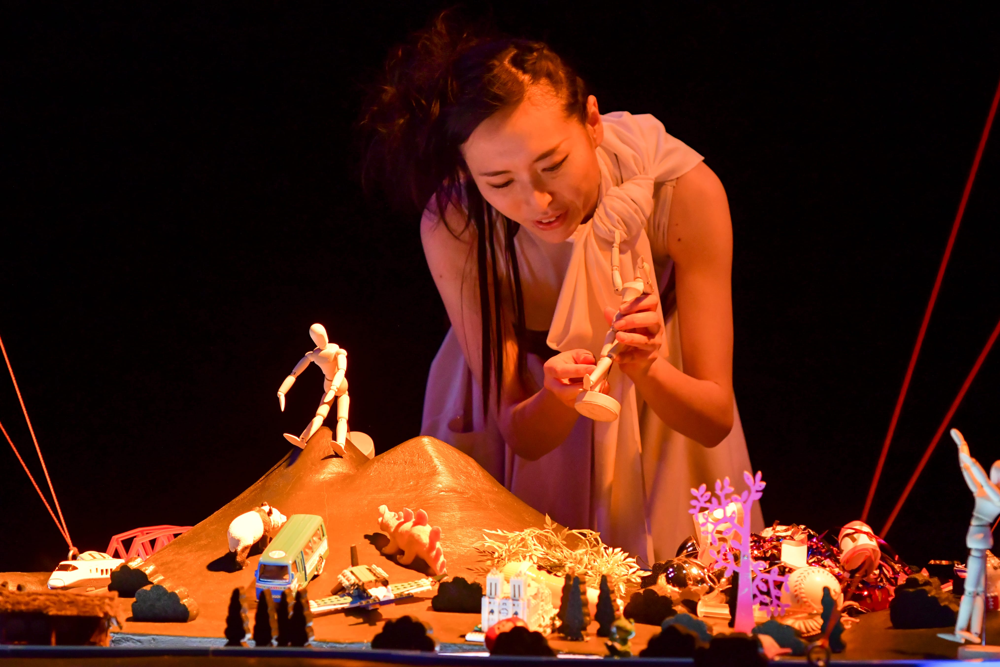 大信 今回、初演と演出を変えたのは、初演では最初から島の上に建物を並べておいて、年表を読み上げながら過去を振り返って確認するような形だったんですね。それを今回は、街を作り上げていく過程に合わせて人形を並べていって、震災でそれが一度おじゃんになって、それが復興していくという演出にしたんです。たぶん、初演の時にはそれはできなかったというか、思いもつかなかったはずです。その時は、まさに壊れた瞬間に自分がいて、これからどうなるか全くわからない状態だったので。最後に歌うところは台本には「立ち去らない行進曲」って書いていて、福島にみんなでエールを送るような感じで歌っていたんだけど、10年経つと何かしら現実においても復興は進んでいて、福島の人たちが10年間頑張ってきた、そのことも作品にしたかったんです。