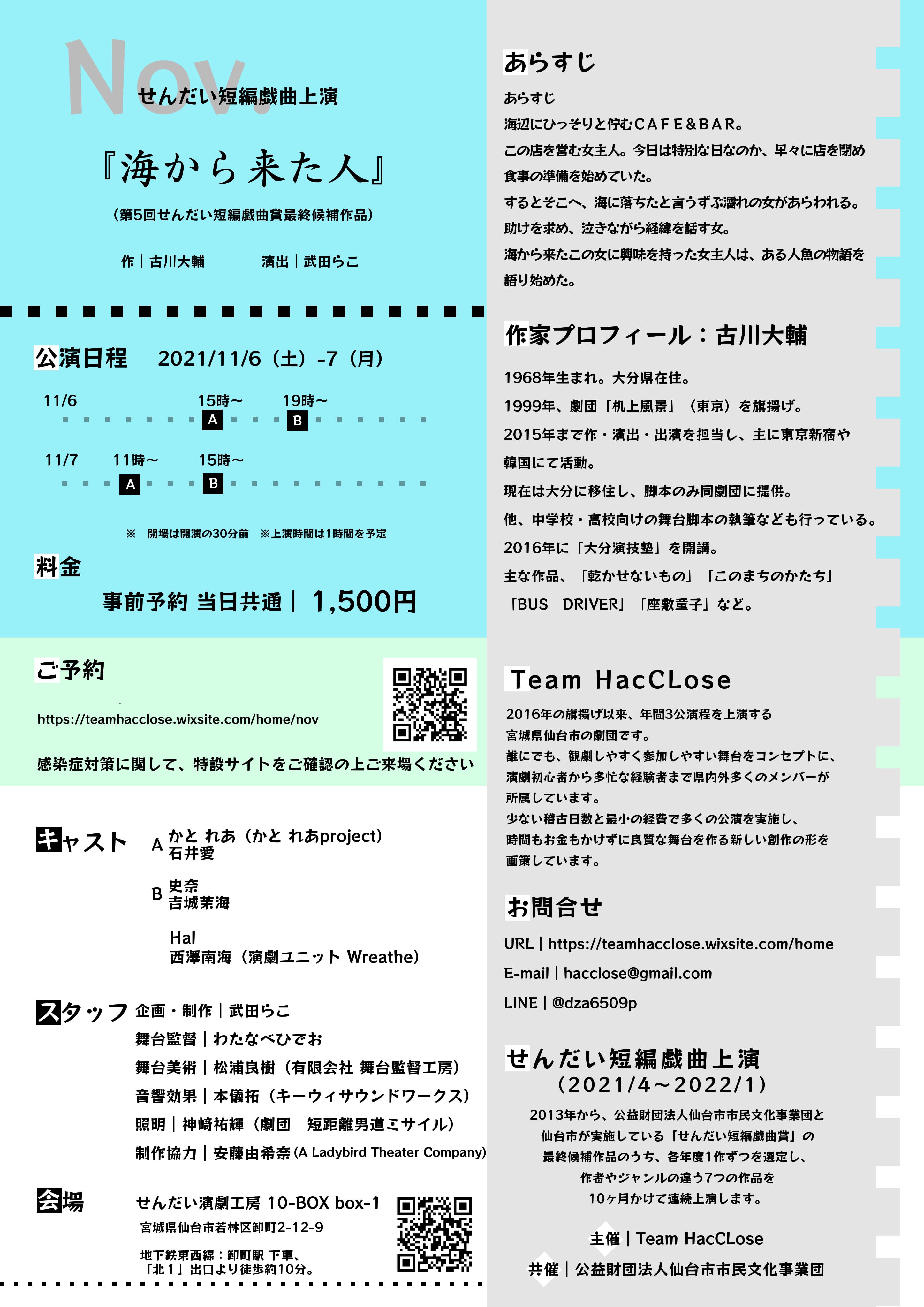 Team HacCLose  せんだい短編戯曲上演 Nov. 『海から来た人』