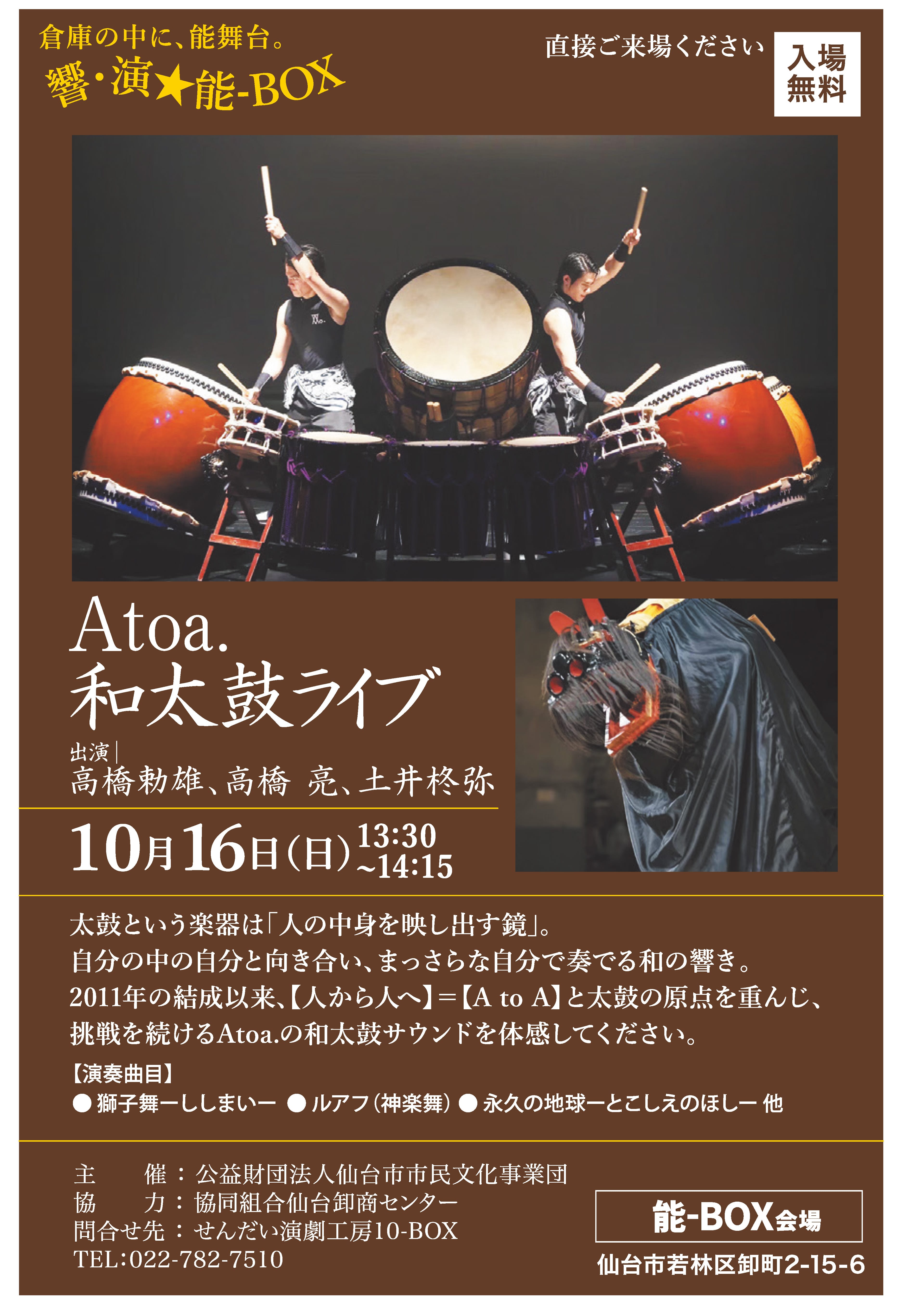 響・演★能-BOX「Atoa.和太鼓ライブ」<2022秋のクロッサム卸町ふれあい市>