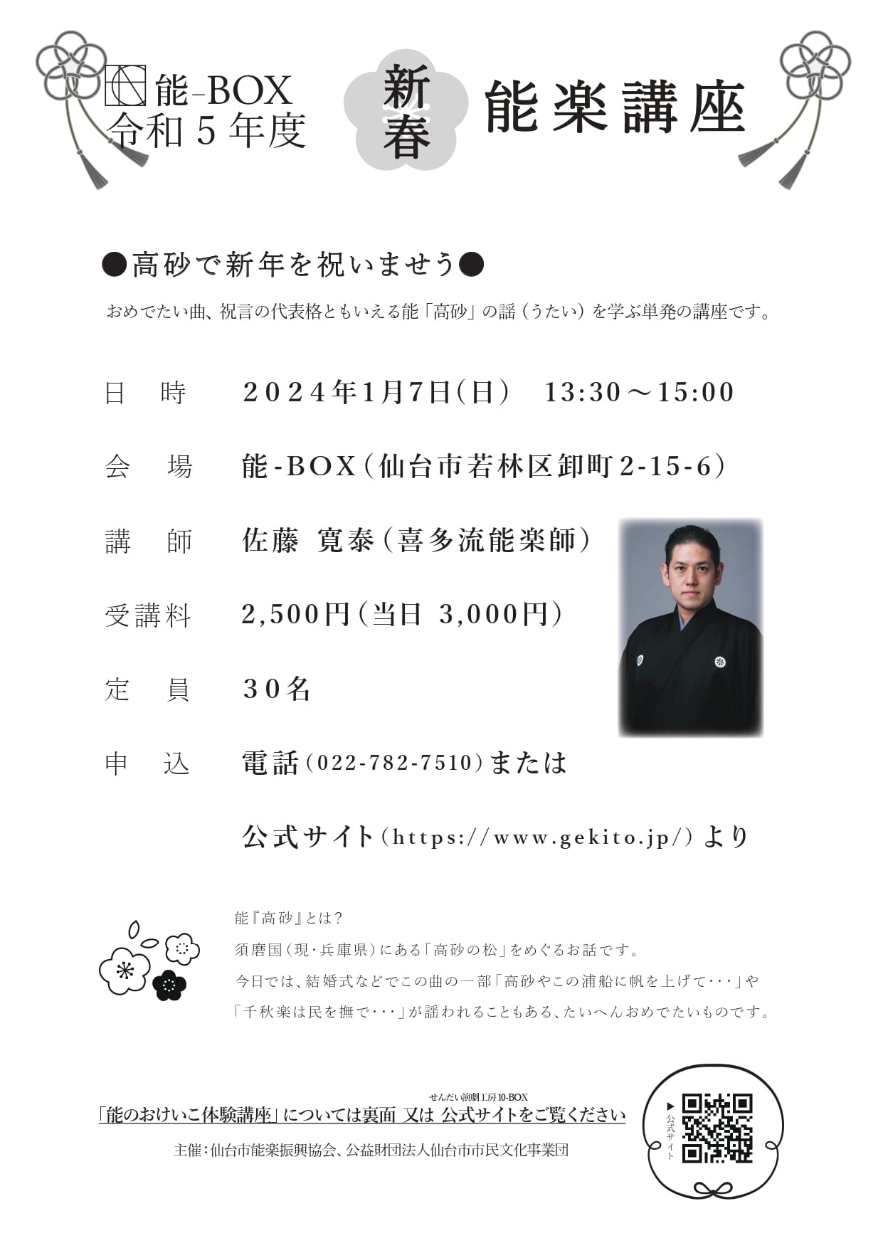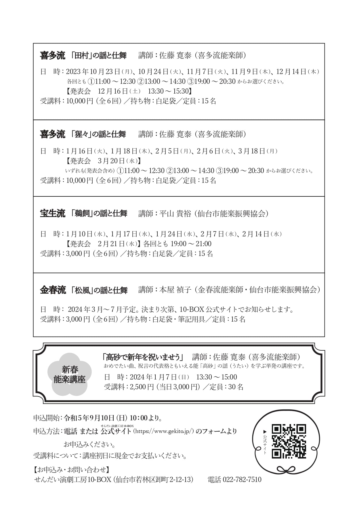 能のおけいこ体験講座はこちらのページよりご覧いただけます。