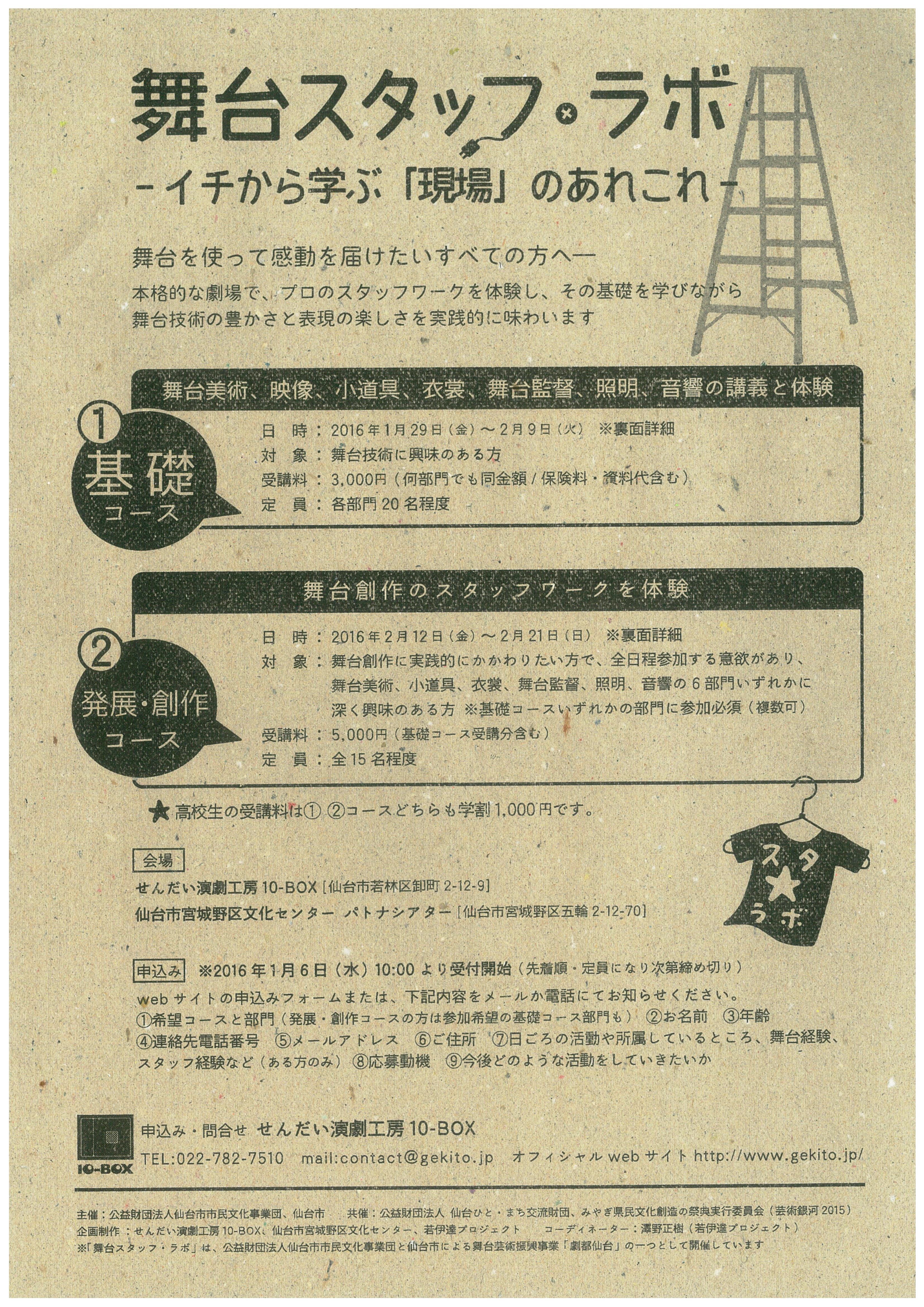 ・内 容 :舞台美術、小道具、衣裳、映像、舞台監督、音響、照明の講義と体験