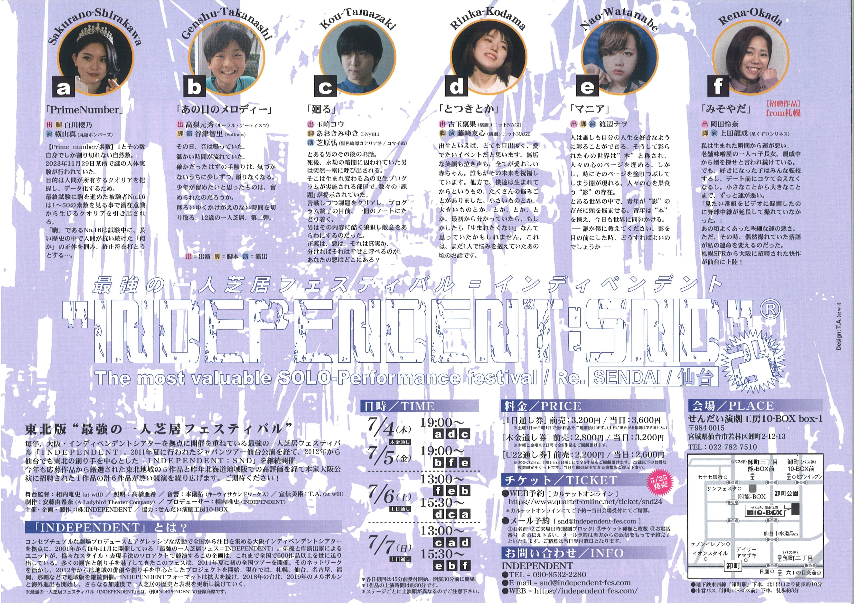 最強の一人芝居フェスティバル INDEPENDENT:SND24