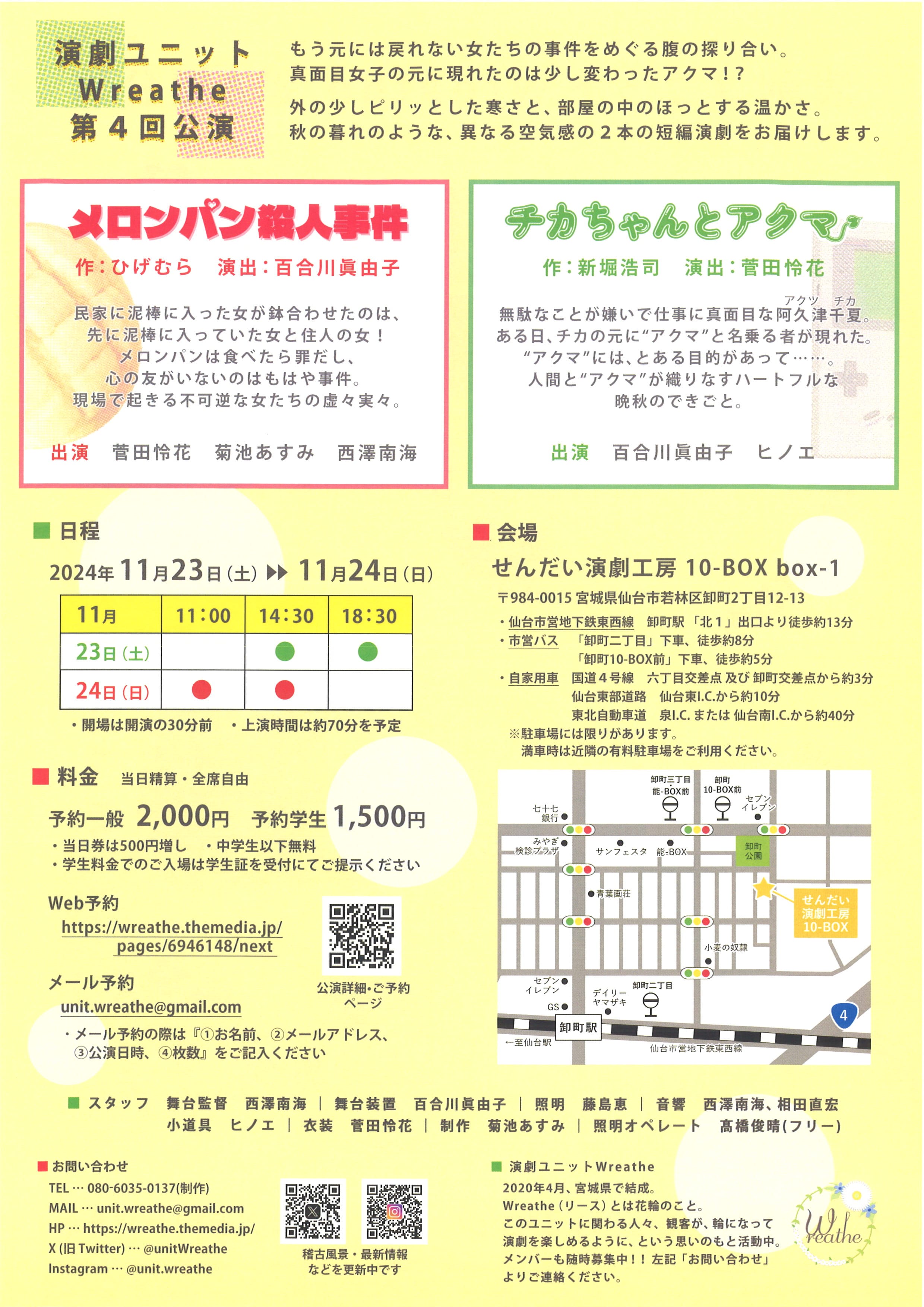演劇ユニットWreathe 第4回公演 「メロンパン殺人事件」「チカちゃんとアクマ」