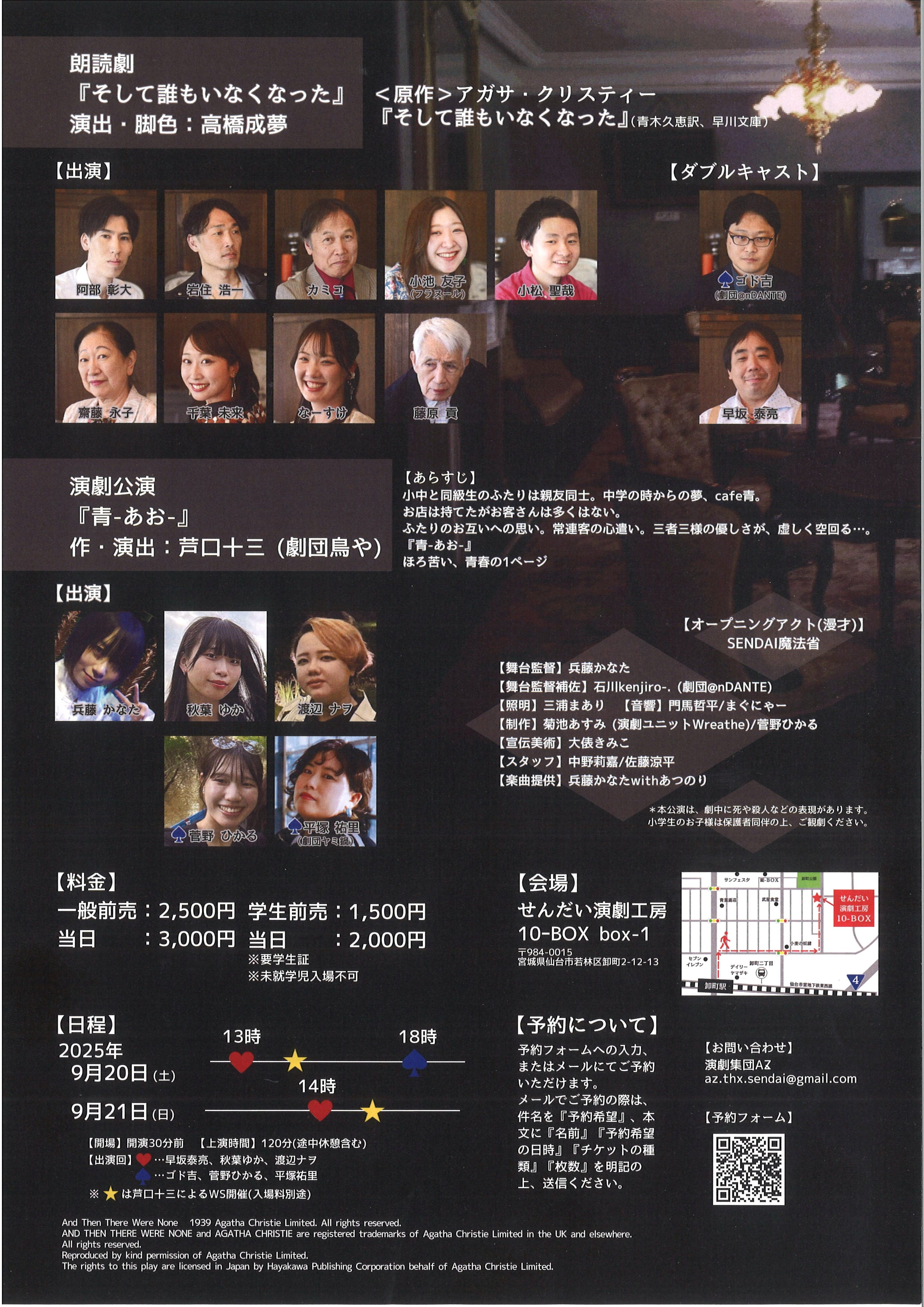 朗読劇『そして誰もいなくなった』原作 アガサ・クリスティー