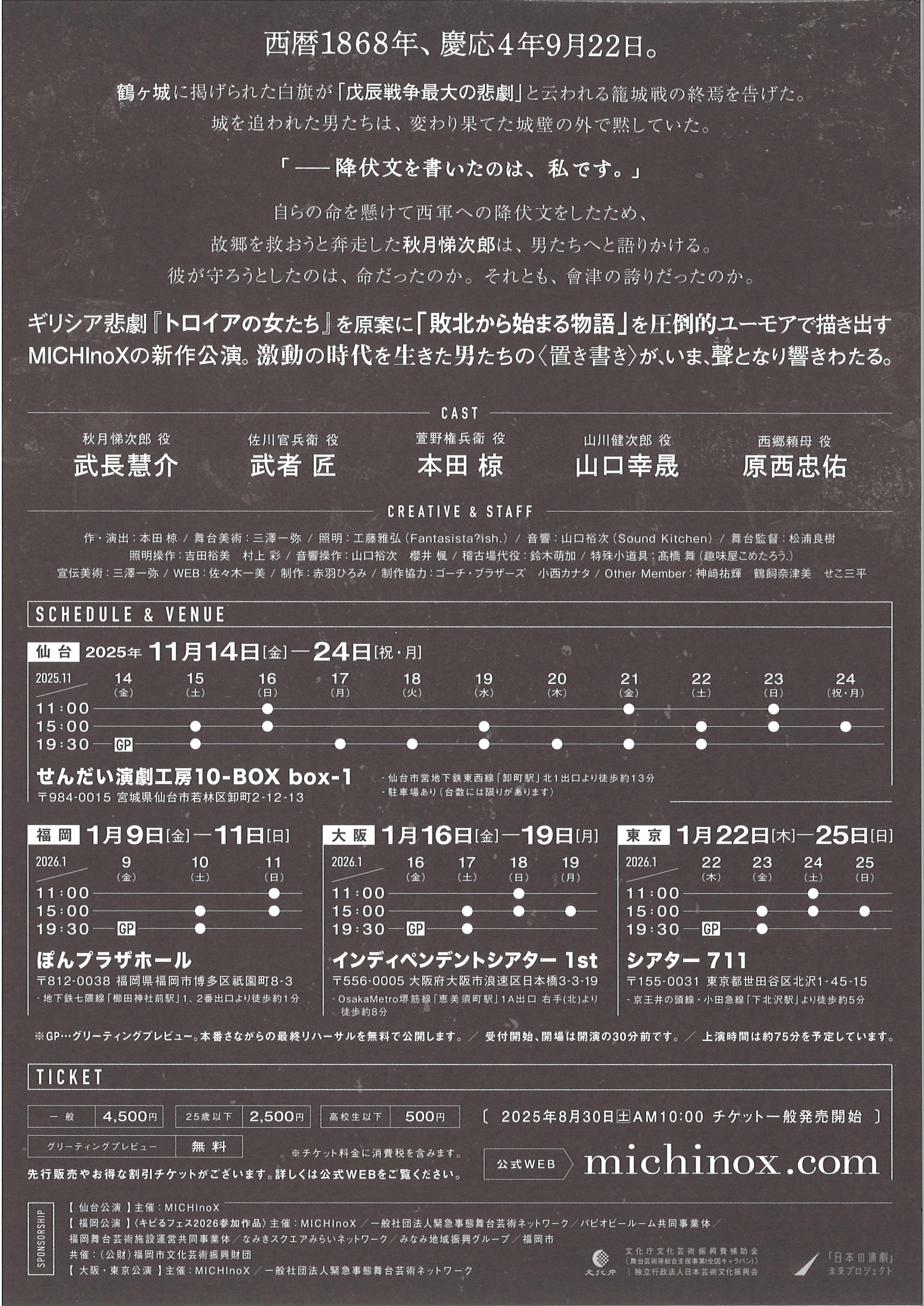 仙台公演の他、福岡公演、大阪公演、東京公演がございます。